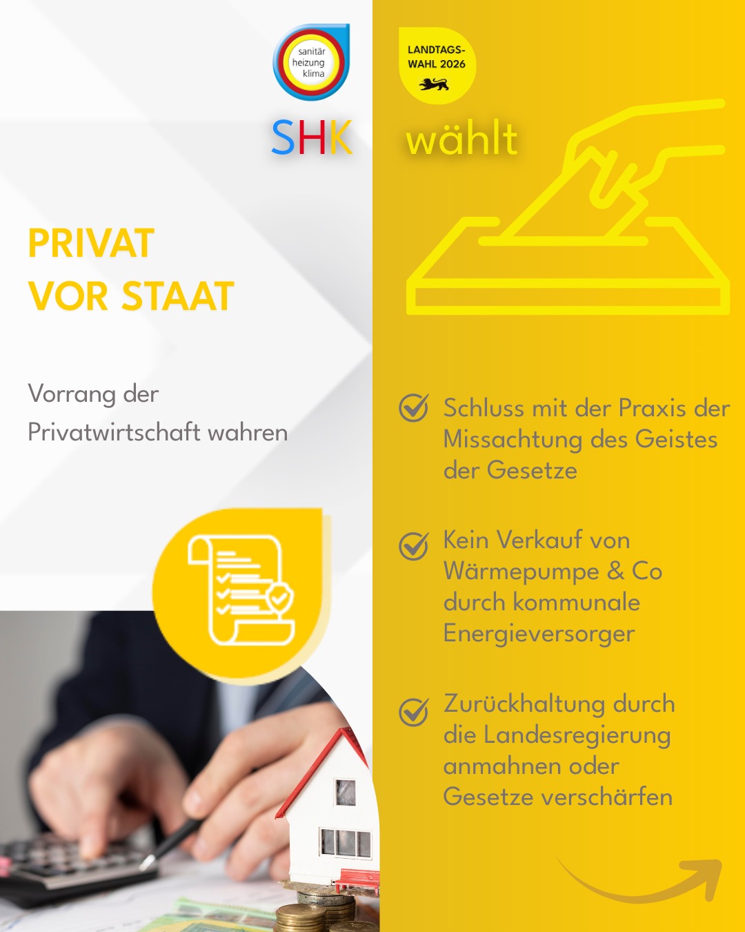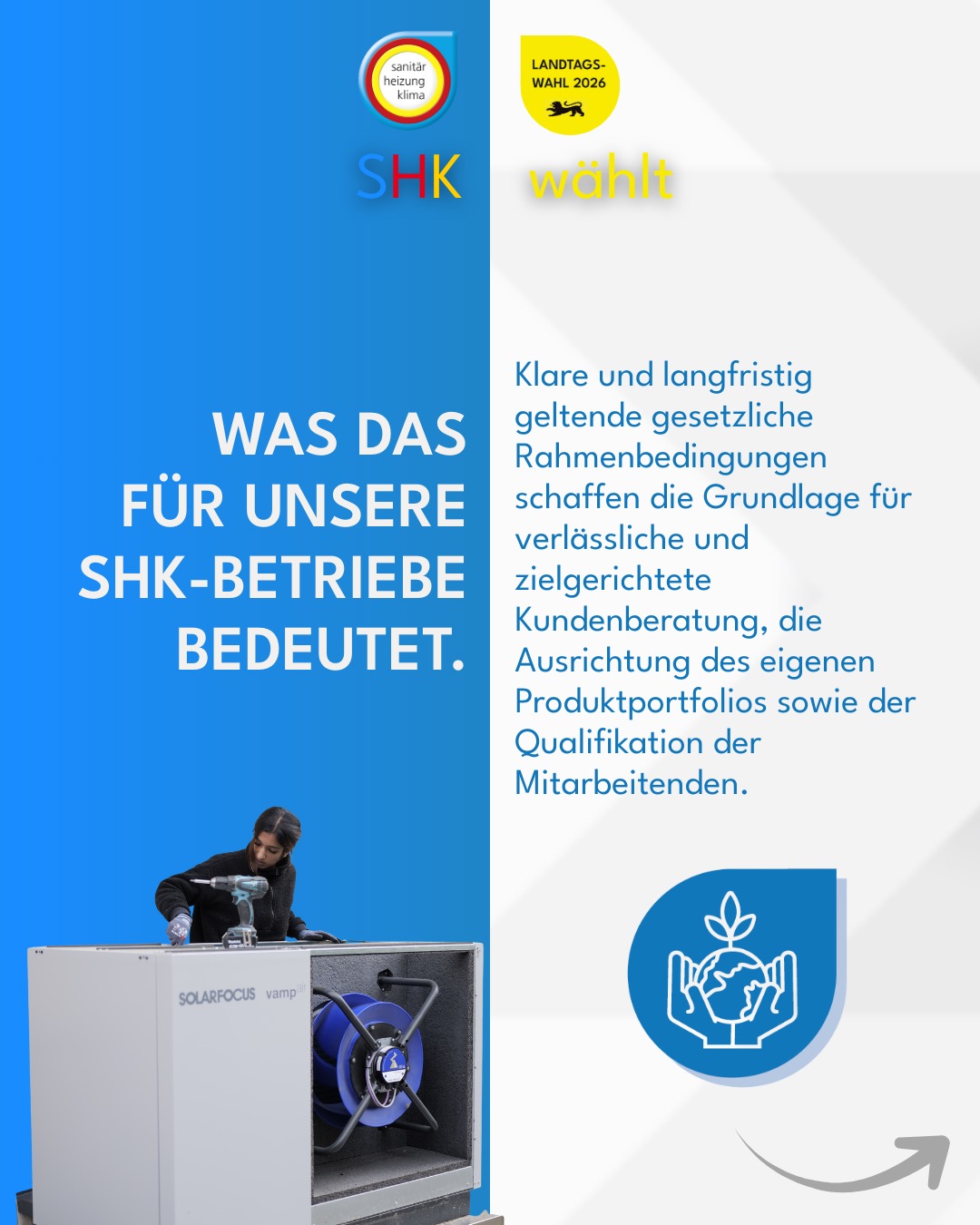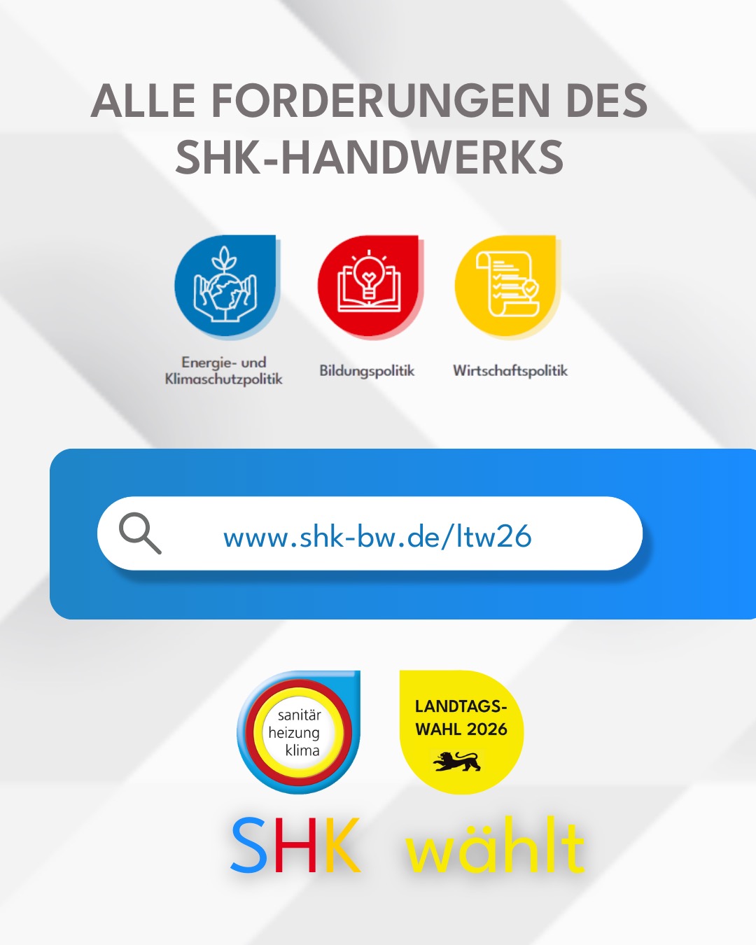 Am 8. März 2026 wählt Baden-Württemberg einen neuen Landtag und damit auch einen neuen Ministerpräsidenten. Die Herausforderungen könnten kaum größer sein. Das Erfolgsmodell des Landes steht auf dem Prüfstand. Stockende Konjunktur, Bürokratie, überlasteter Sozialstaat, fehlende internationale Wettbewerbsfähigkeit, sprunghafte und unvorhersehbare Politik und Krieg gefährden unsere Sicherheit. Die Wärmewende als Teil der Lösung der Klimaziele stockt. Welche Lösungen haben die Parteien? Wir haben nachgebohrt und die zentralen Fragen des SHK-Handwerks an die Politik gestellt. Unsere „Wahlprüfsteine“ sollen Sie bei Ihrer persönlichen Entscheidungsfindung zur Landtagswahl unterstützen.